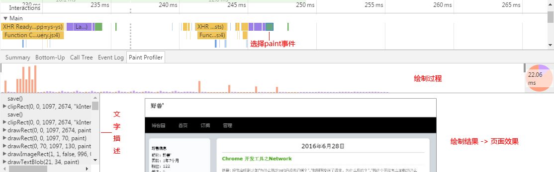 記錄paint過程的信息,可以在paint profile細節面板中查看,記錄繪制信息有產生一定的性能損耗