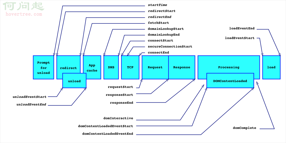 startTime:有些浏覽器實現為navigationStart,代表浏覽器開始unload前一個頁面文檔的開始時間節點。比如我們當前正在浏覽baidu.com,在地址欄輸入google.com並回車,浏覽器的執行動作依次為:unload當前文檔(即baidu.com)->請求下一文檔(即google.com)。navigationStart的值便是觸發unload當前文檔的時間節點。