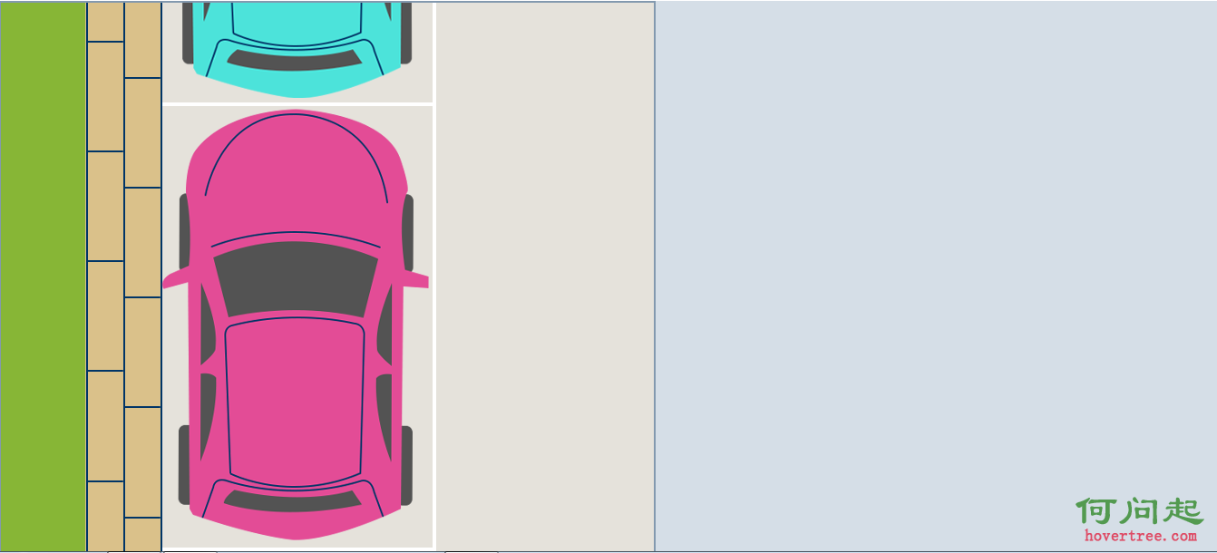 首先,我們要准備兩張圖片素材,車輛的圖片還有停車場的圖片。以下兩張圖是車停好之前和停好之後的圖片,整個過程是靠紫紅色車輛的左右移動實現車輛進出停泊過程。首先,我們先定義整體頁面的html。