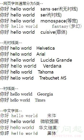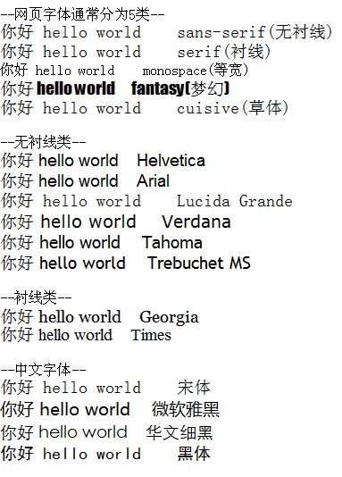 sans-serif(無襯線)類 : Arial; //只要設置成sans-serif類,不管什麼字體,都一個樣子。