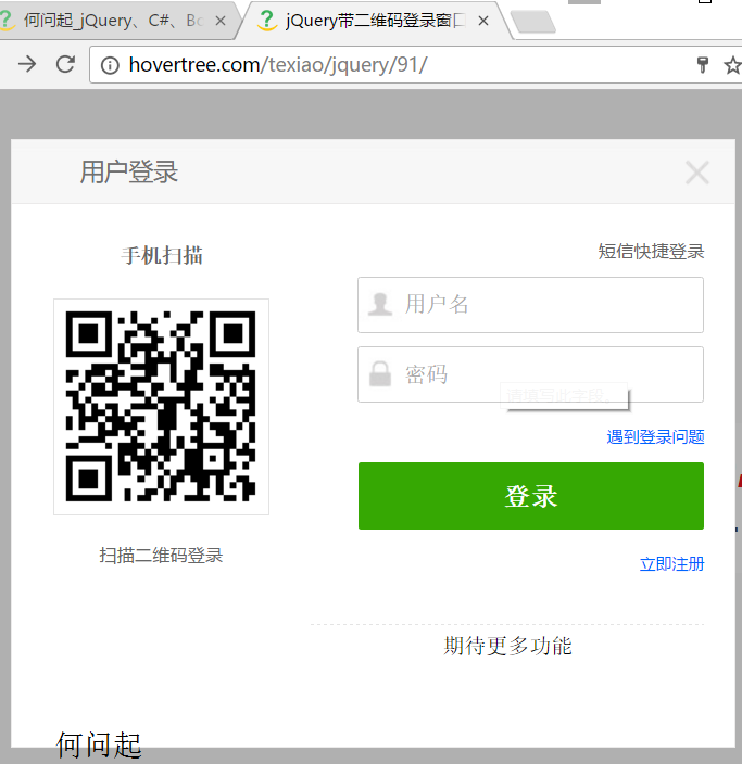 <title>jQuery帶二維碼登錄窗口彈出層特效 - 何問起</title>