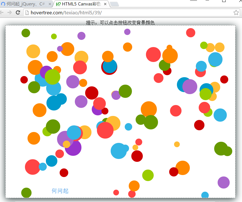 <title>HTML5 Canvas彩色小球碰撞運動特效 - 何問起</title>