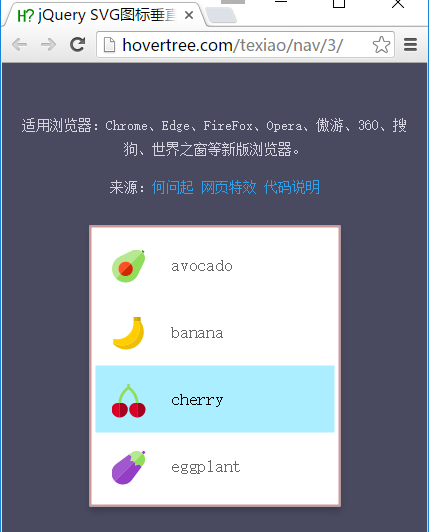 jQuery SVG圖標垂直導航菜單代碼是一款當鼠標滑過菜單項時,會有一個背景遮罩層跟著鼠標移動,效果非常炫酷,圖標還是SVG矢量圖。
