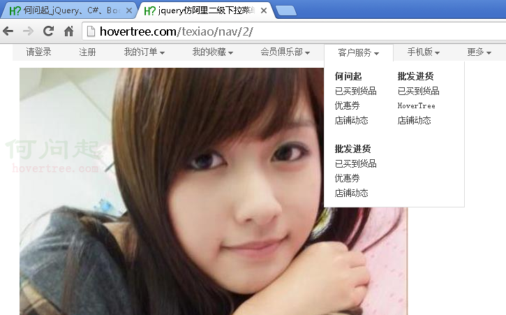 jQuery仿阿裡頁面頂部下拉二級菜單