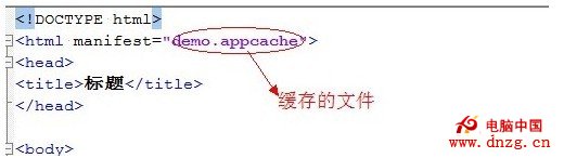 如需啟用應用程序緩存,請在文檔的 <html> 標簽中包含 manifest 屬性:<!DOCTYPE HTML> <html manifest="demo.appcache">……