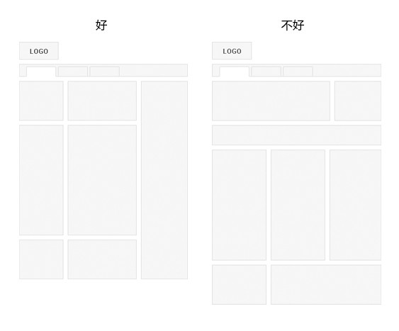 3. 使用非對稱的設計,有主有次,展現豐富性。但注意,非對稱設計會增加認知負擔,降低可用性。見上文。
