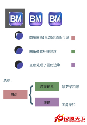 在做icon時很容易出現一些常見的毛邊,導致像素過渡化,最後圓角不柔和。