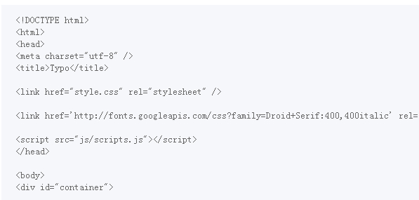 完整的源代碼和CSS3部分參見原文http://line25.com/tutorials/create-a-typography-based-blog-layout-in-html5