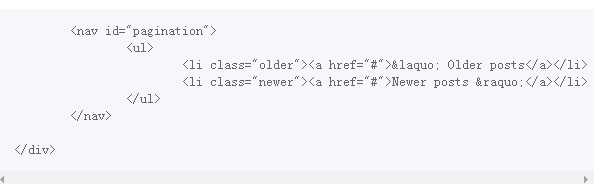 在一系列博客的下方,有一對分頁鏈接。通常分頁鏈接的重要性並不和<nav>(可以被用在多個地方,並不只是主導航)元素