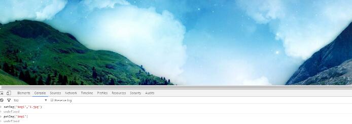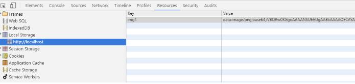 該函數接收兩個參數,一個是key值,還有一個是圖片的路徑,通過setImg(“img1”,”1.jpg”)保存圖片到localStorage,我們可以查看Local Storage的存儲情況: