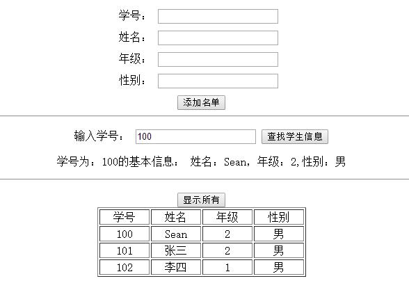 •錄入學生的基本信息(包括學號,姓名,年級,性別),以學號為key值來存儲到local storage中;