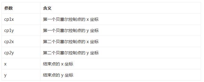 •context.bezierCurveTo(cp1x,cp1y,cp2x,cp2y,x,y); 繪制三次貝塞爾曲線,參數如下: