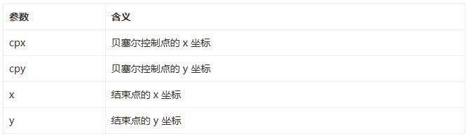 •context.quadraticCurveTo(cpx,cpy,x,y);繪制二次貝塞曲線,參數含義如下: