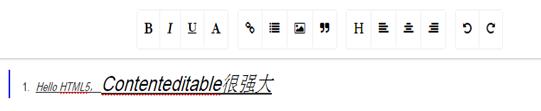 Contenteditable可用於實現網頁編輯器,當前很多網頁編輯器都用這個屬性實現,如下圖: