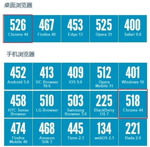 當前各大浏覽器對HTML5支持情況(滿分是555分),http://html5test.com/