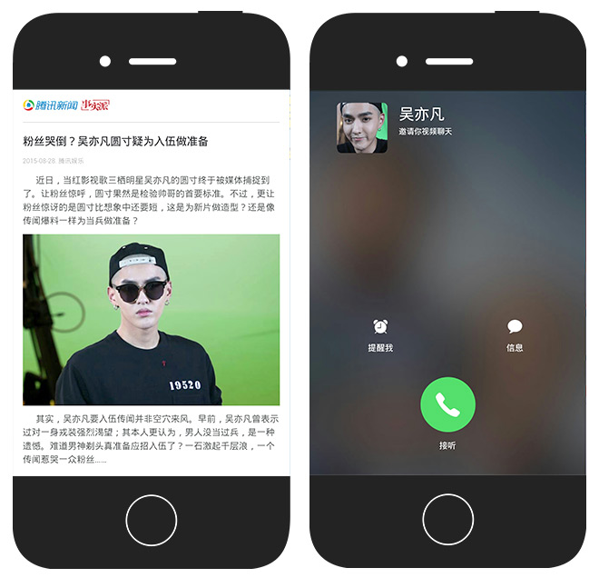 前段時間是怎樣刷爆朋友圈?真正吸睛的是“吳亦凡即將入伍?”傳播性上披著娛樂新聞的外衣,附帶明星效應。也結合了大家最關心的娛樂、時政、軍事方面。點開鏈接可以看到騰訊新聞描述吳亦凡即將入伍,緊接著在用戶還未反應過來的時候吳亦凡真人猛然出現一把扯開這個攝影棚布,這時觀眾才反應過來這是個“披著羊皮的狼”。模擬騰訊新聞到轉變成視頻通話再鏈接到廣告頁面,一步一步引導得很緊湊,這個H5在當時出來時,幾乎整個朋友圈每個微信群都是他的影子;從創意上來說可為藥勁最猛的H5廣告,技術上也算是一種突破,後來也吸引了很多品牌方效仿。