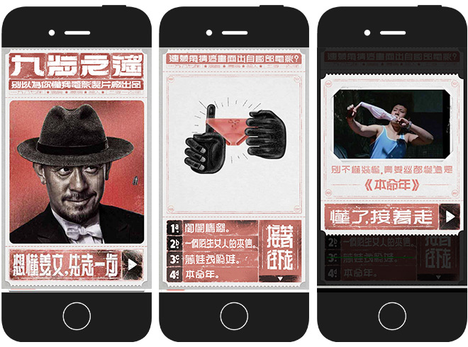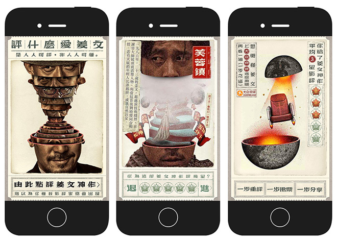 看到這類作品能在微信傳播的設計師們應該樂壞了,這種畫面執行獨特,細節入圍的H5廣告不但在主題上貼合了導演的品性,還在身價上和同類廣告拉開了距離,老子我玩的就是人堆兒裡的不一樣!