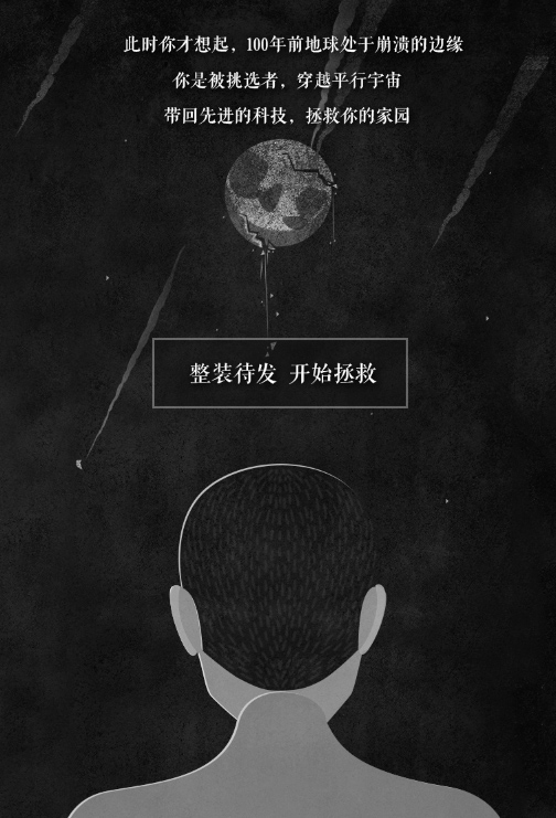 我們把HTML5 頁面包裝成一個故事,用第一人稱視角帶領用戶去體驗整個過程,故事中主人翁“我”代表用戶,打開這個頁面就表示“我”已被選中,在太空中漂浮了100年,我需要通過選擇正確的宇宙穿越才能找到平行宇宙中的同盟者,將其帶回來完成拯救地球的任務…