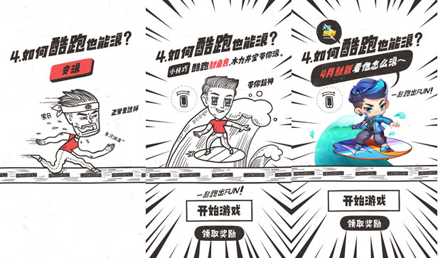 而我們不希望將酷跑新角色直接平乏的展示,希望它的出現能更加有趣和好玩才能更容易被記住。