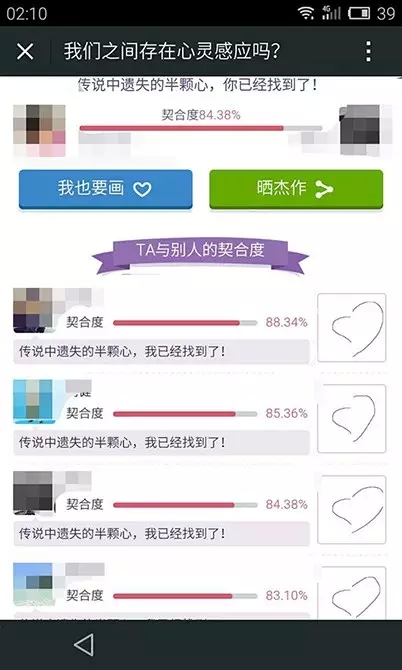 當然,要讓品牌能傳播得更遠還需在H5上融入社交性,借助用戶的社交關系鏈傳播。社交需求是用戶存在社交媒體的核心,通常用戶會通過談資、幫助、比較、炫耀、窺視.....與好友維持或促進社交關系。因此,在H5設計中,應融入了這些能讓用戶分享的動機。如果你是土豪想用錢來促使用戶轉發,效果是有的,但是給你帶來的是一堆無用數據,因為那不是促使用戶分享的真正動機,自然品牌就不能被他們記住。UC浏覽器在520”我們心存感應嗎“H5中就融入了關系比較的社交屬性,朋友圈是個神奇的地方,每個人都想知道自己真正與好友的關系如何或在一個圈層中好友之間的關系比重如何。當然這個游戲並不能測出什麼來,但很好的將UC傳達的”趣發現,最走心“浏覽器的品牌理念傳遞給用戶。