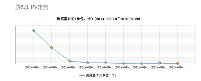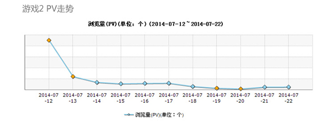 手機頁面上線推廣第一天是訪問頂峰,第三天後的數據趨於平穩,訪問較低,可見下面2個例子。有其他資源推送(例如PC官網固定位置放置二維碼)的專題走勢不一樣。