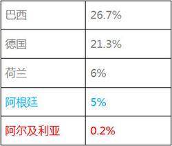 巴西世界杯期間,最受關注的兩個國家巴西和德國的用戶選擇占所有國家選擇的48%。而擺放位置差不多的阿根廷和阿爾及利亞,關注度相差25倍。