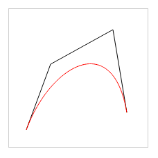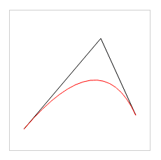 二次方貝茲曲線的路徑由給定點P0、P1、P2的函數B(t)追蹤: