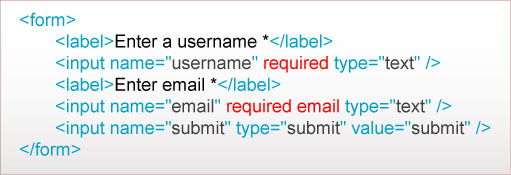 在 HTML4 我們需要這樣寫代碼,然後使用 JavaScript 或服務器端的腳本進行驗證: