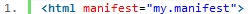 這樣做了以後,你就可以在網頁的 html 元素中添加如下標簽。你可以給你的 manifest 取任何名字,不過請確保它在你的網站的根目錄下,而且文件名以 .manifest 結尾。