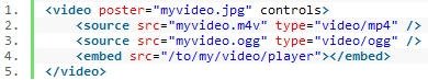 這將保證你的內容可在 Firefox、Safari、Chrome,以及移動電話上播放。最後,對於那些不支持 video 標簽的浏覽器,你仍然可以回頭選擇 flash 播放器。當浏覽器不支持某個標簽時,它通常就不會處理該標簽,然後繼續檢索直到找到一個它認識的標簽。在這種情況下,如果你將一個 embed 或者 object 放在 video 標簽中,那麼類似 IE 的浏覽器就會使用 object。但是,支持 video 標簽的浏覽器就會忽略嵌入的 flash。