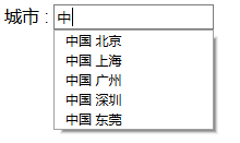 <label>城市 : </label><input id="country_name" name="country_name" type="text" list="city" />