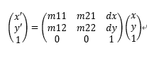 也就是說假設A(x,y)要變換成B(x’,y’)可以通過乘以上述矩陣即可得到。