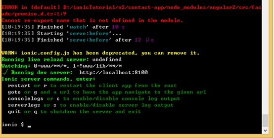 $ ionic serve