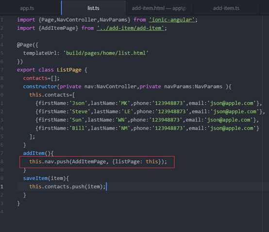 使用IonicFramework v2 + angular 2 完成一個簡單的聯系人列表的操作,有三個頁面: