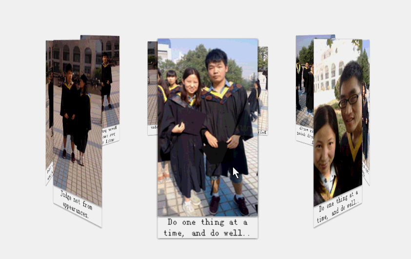 有一點要注意:本例子,其實正在的動畫效果,在於鼠標點擊,div#Container在不端的改變rotateY,所有的圖片元素均在div#container中,且已經展現為旋轉木馬效果,現在要做的就是旋轉這個木馬,所以只需要每次改變div#container的rotateY 40角度即可。