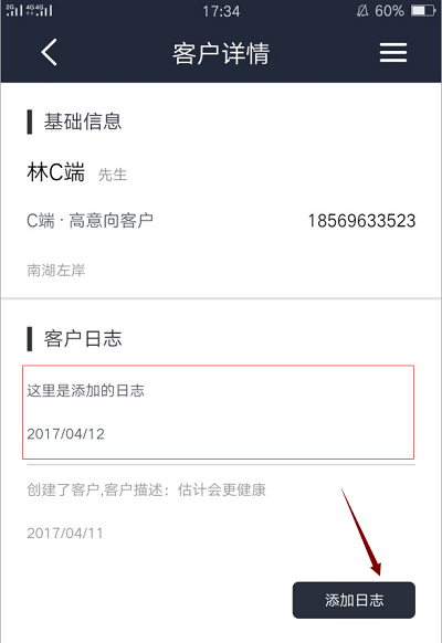 //將填寫的日志 返回的json數據 填充到客戶詳情