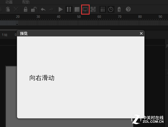 1、 在舞台左邊輸入“向右滑動”文字,如下圖所示: