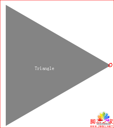 Html代碼中我們定義了兩個div,外部div是容器對象,內部div用來生成三角形。CSS代碼中,我們沒有為內部div設置寬度和高度,只設置了border三個邊的寬度(上、下和左)。通過為三個邊設置不同顏色,他們會分別變成三個不同的三角形。