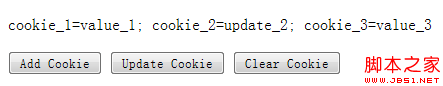 通過cookie屬性,可以對document的cookIE進行新增,修改和讀取操作。如下例: