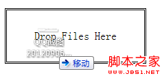 5.拖拽文件 Html5支持file api,可以讓我們操作本地文件。一般我們不直接使用file api,我們可以結合其他特性一起使用,比如結合拖拽特效,如下例: