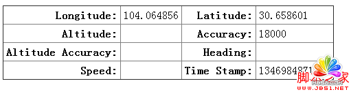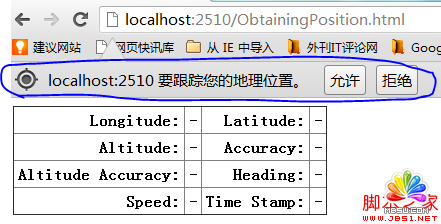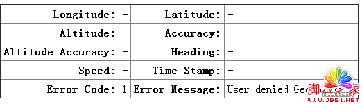 並不是所有的信息都會返回,這取決於你承載浏覽器的設備。像有GPS、加速器、羅盤的移動設備會返回大部分信息,家用電腦就不行了。家用電腦獲取的位置信息,取決於所處的網絡環境或者是wifi。下面我們看上例的運行結果。