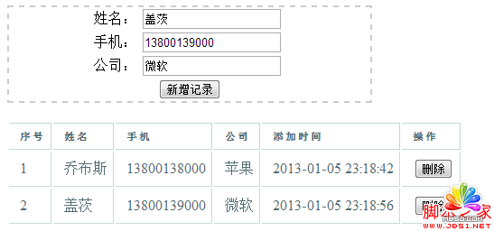 可創建聯系人並保存到數據庫中,聯系人字段包括:姓名、手機號碼、公司、創建時間;