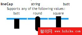 也是可以的,即lineCap屬性,這個就是定義線條的端點。lineCap有3個值:butt(平,默認),round(圓),square(方),如圖8