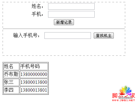 錄入聯系人,聯系人有姓名、手機號碼2個字段,以手機號作為key存入localStorage;