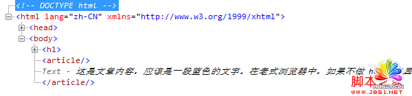 IE8 不能識別 article 標簽, 定義在標簽上的 CSS 樣式沒有起作用. 在 IE8 中, <article> 被解釋成命名為<article /> 和 </article /> 兩個空的標簽元素, 與文章內容並列為兄弟節點, 如下圖.
