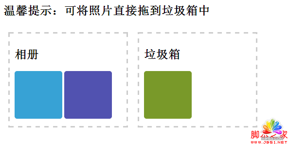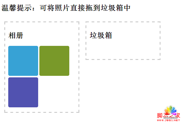 //將被拖動的照片DOM節點添加到垃圾桶DIV中;