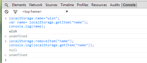 localStorage.name="wish"; localStorage["name"]="wish"; localStorage.getItem("name"); //retrIEve