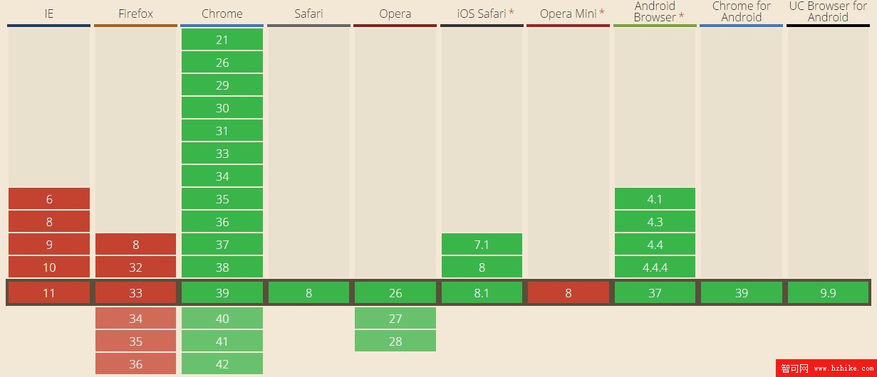 由於是Html5新標簽,浏覽器支持情況不是很理想。從來自caniuse的數據來看,目前僅Chrome, Safari 8+ 和Opera 26+支持此標簽。