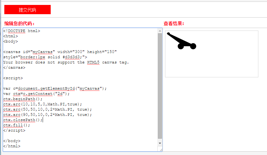 context.arc(x,y,radius,startAngle,endAngle,flag); //以canvas內坐標點(x,y)為圓心radius為半徑,起始弧度為startAngle,終止弧度為endAngle,flag為bool值, 當flag值為true時,表示逆時針旋轉,當flag為false,表示以順時針旋轉;