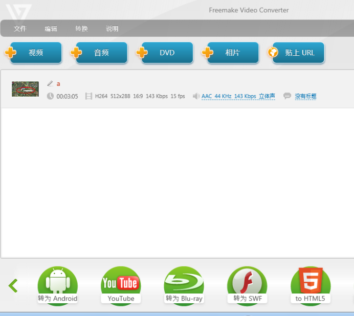 但是我們知 道很多網絡上的視頻不是上面的三種格式,大部分是flv格式或者wav格式等,如果我們直接使用這樣的格式的話,那麼在標准浏覽器中使用video標簽肯 定不支持的,那麼現在我們需要轉換成Html5支持的格式,我們可以在網上下載一個轉換格式工具轉換下,我現在下載的是:Freemake video converter 下載地址是:http://www.freemake.com/free_video_converter/ 如下界面